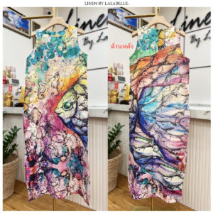 ชุดเดรสลินินพิมพ์ลายสวยละมุนโดดเด่นมากๆ ค่ะ แขนกุด ผ่าข้างขึ้นมาเล็กน้อย มีกระเป๋าข้าง มีซิปหลังค่ะ